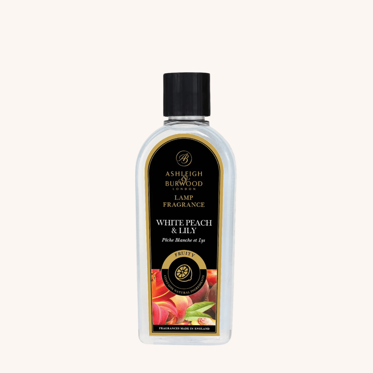 White Peach & Lily Lamp Fragrance features fragrant floral top notes of nectarine blossom and lily are carried on a summer’s breeze to dance above a sweet heart of delicious white peach and creamy musk.