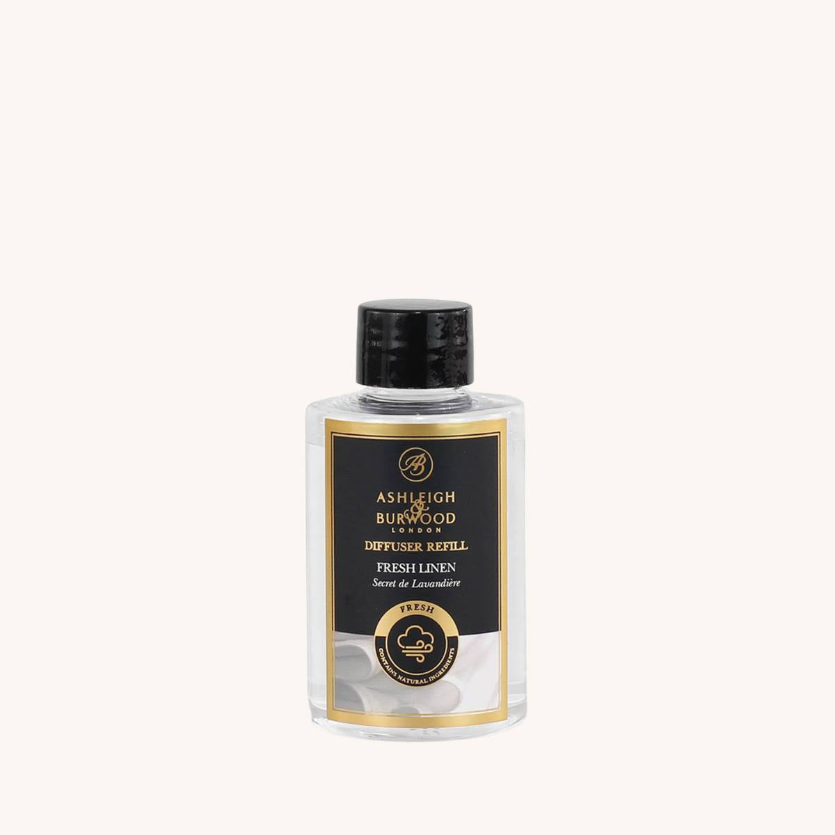 Fresh Linen Reed Diffuser Refill features delicate cotton blossom blended with soft floral notes of lilac and jasmine and hints of warm golden amber.