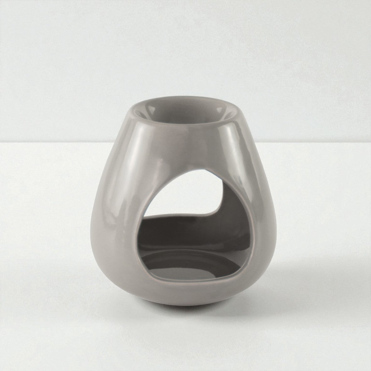 This grey, teardrop shaped ceramic Wax Melt Burner is designed in a simple, minimalist style.